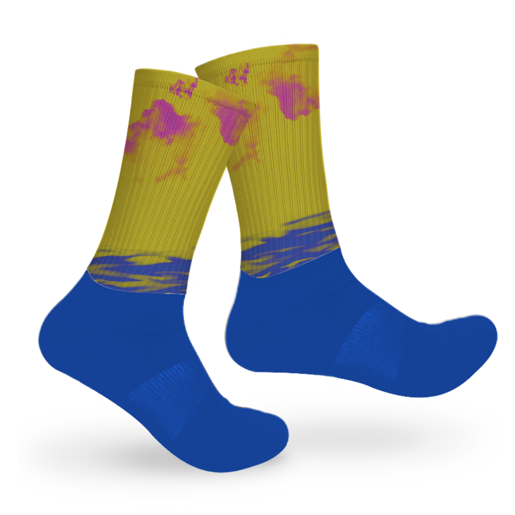 Who doesn't love a good print? We know we do and this cool, abstract one is just what you need for your next show stopping pair of socks. This style is mid-crew length, with a cushioned dry-fit cotton foot and a high quality print material from the ankle up.
