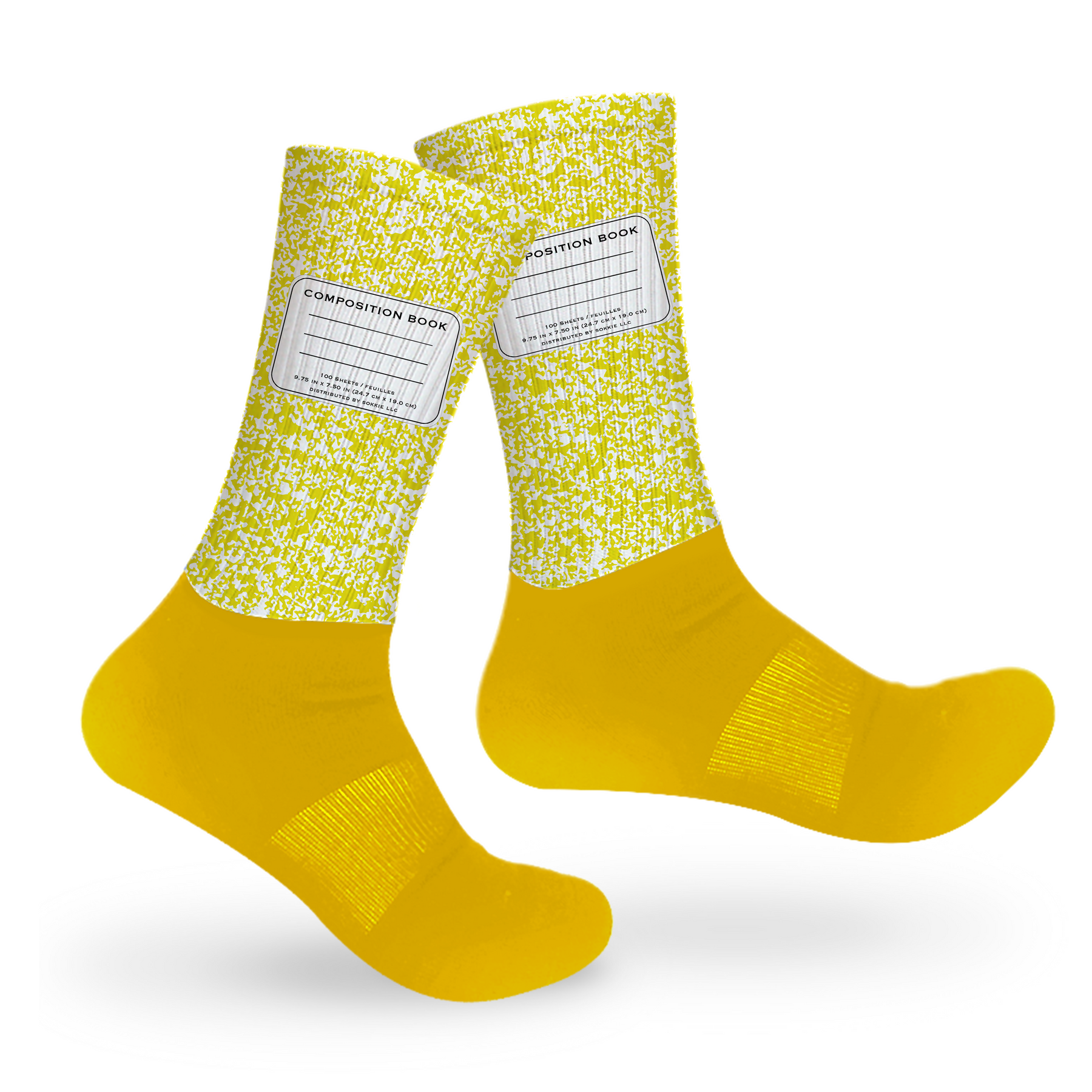 These retro composition book socks will bring you back to the days before cell phones! Forget texting, what about passing a note to your friend?! This style is mid-crew length, with a cushioned dry-fit cotton foot and a high quality print material from the ankle up.