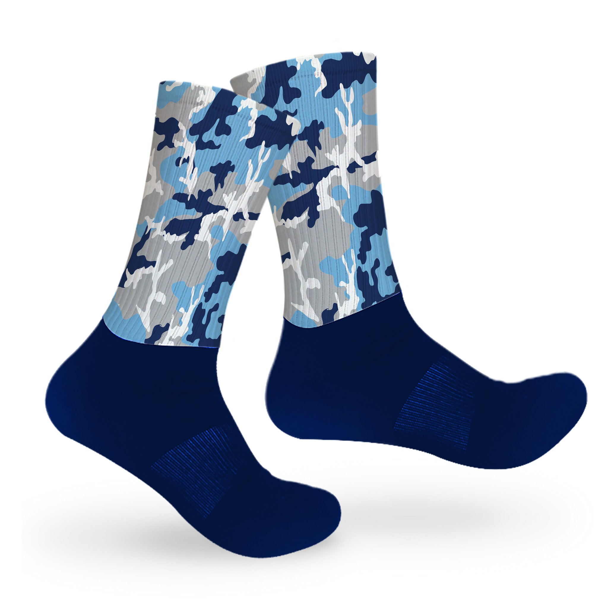 No blending in with this one! These colors and cool design are made to stand out. Our personal favorite sock style that you can wear daily because it's so comfortable! This style is mid-crew length, with a cushioned dry-fit cotton foot and a high quality print material from the ankle up.