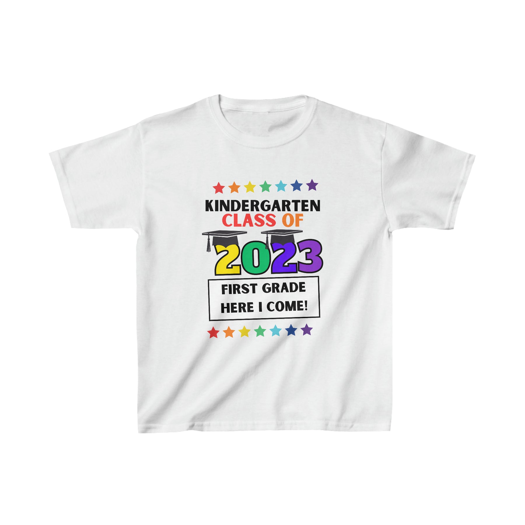 The kids heavy cotton tee is perfect for everyday use. The fabric is 100% cotton for solid colors. Polyester is included for heather-color variants. These fabrics are prime materials for printing. The shoulders have twill tape for improved durability. The collar is curl resistant due to ribbed knitting. There are no seams along the sides. Select your current and upcoming grade level for a perosnlized touch!