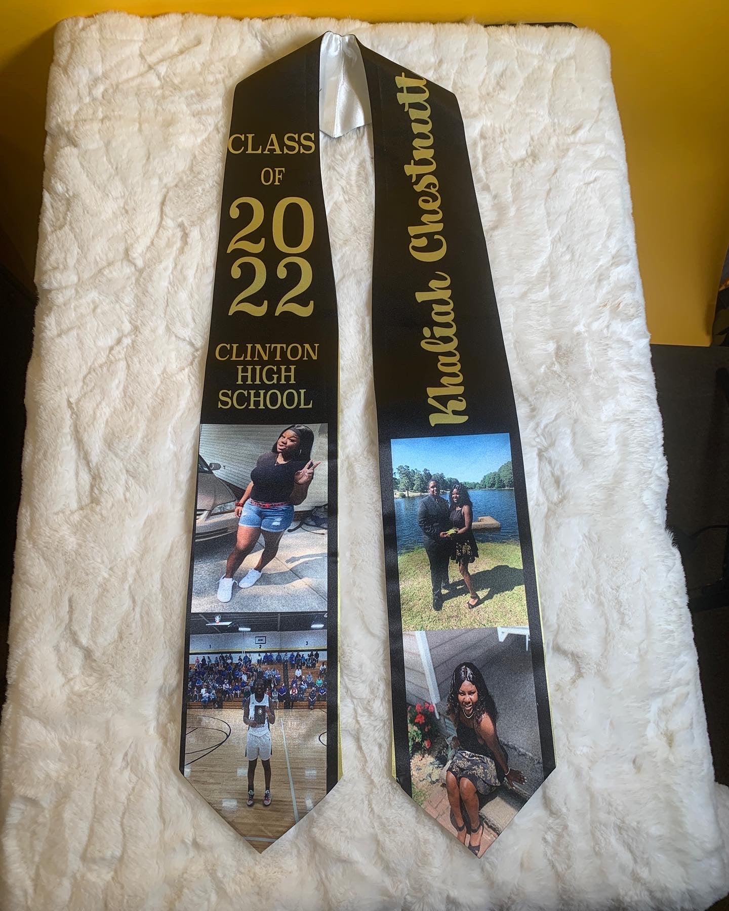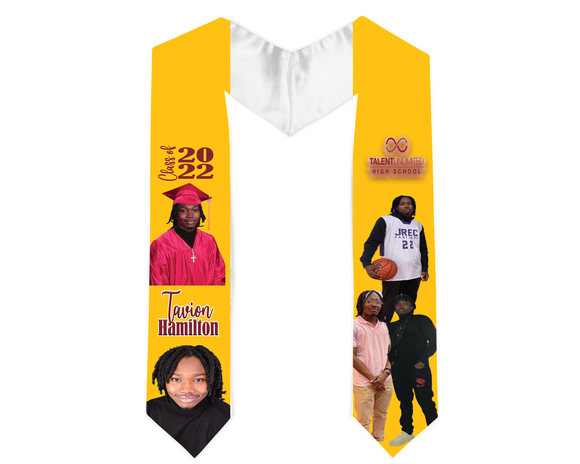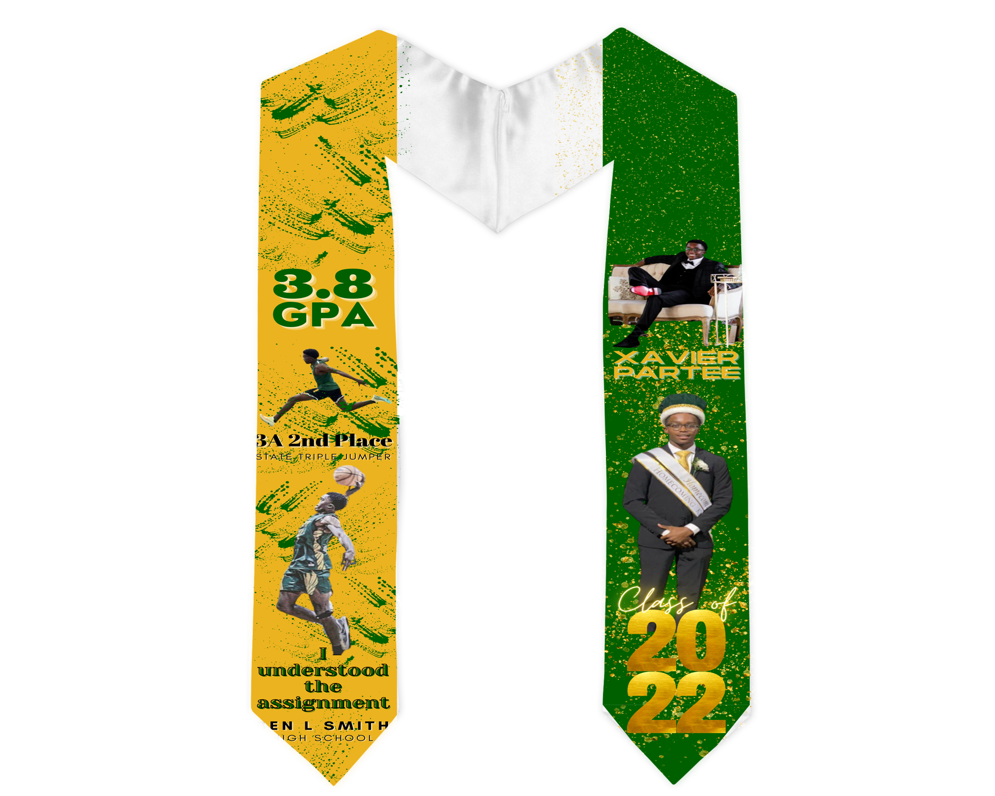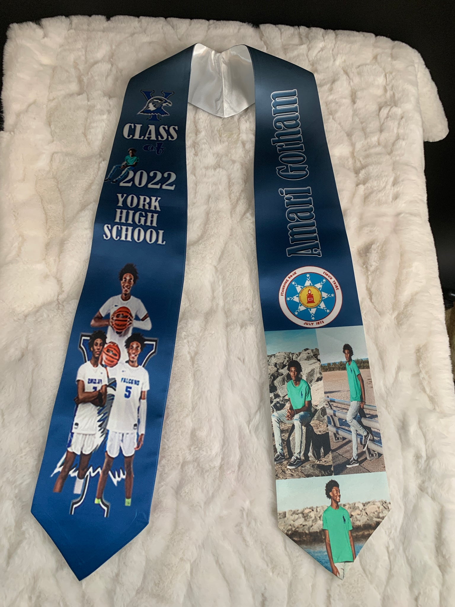 Celebrate graduation in style with a stole that has you written all over it! Proudly display your achievements, honors, traditions and more. Several designs to choose from. Add your personal style by choosing your colors, adding name, school etc! Upload your favorite images, school logo or more for the perfect way to graduate in style!