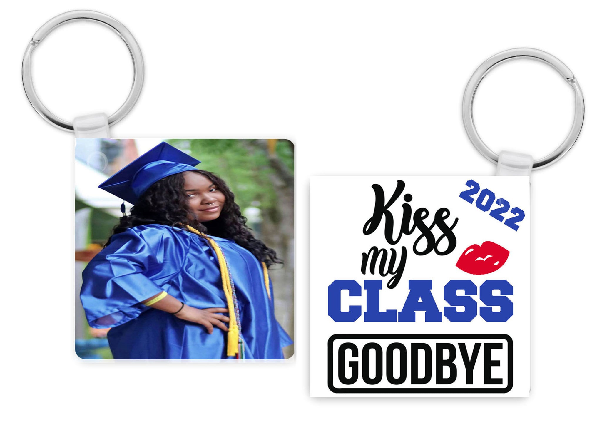 Take the memories of your special day with you every where you go. Your cap and gown picture or your favorite senior portrait, the option is yours! Put it on your keychain so you have the memory of senior year everyday! Choice of Single Picture on Side 1 or Picture Collage. Back will display text as shown. Select school colors for a personal touch!