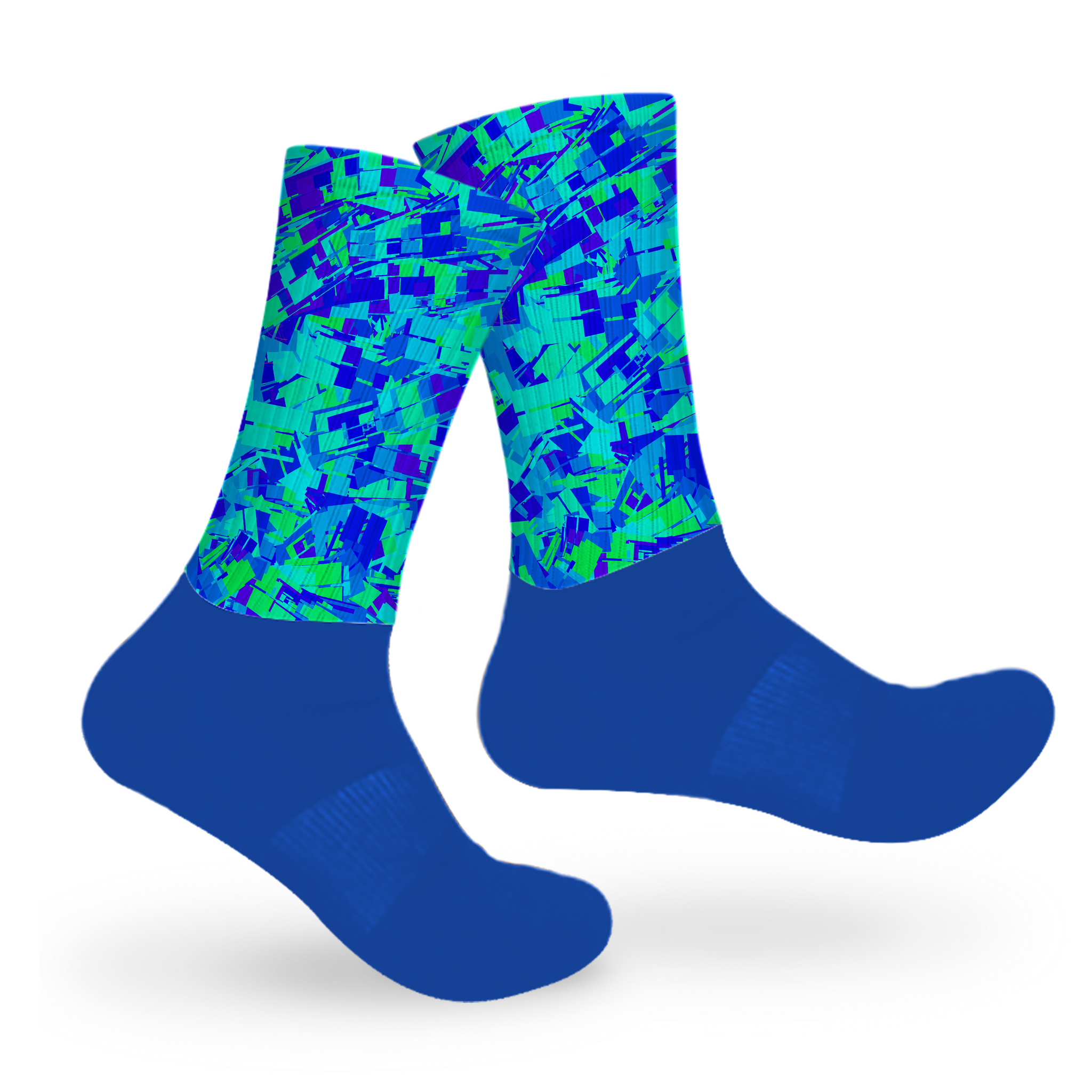 All eyes on you. This cool, colorful mosaic print is just what you need for your next stylish pair. This style is mid-crew length, with a cushioned dry-fit cotton foot and a high quality print material from the ankle up.