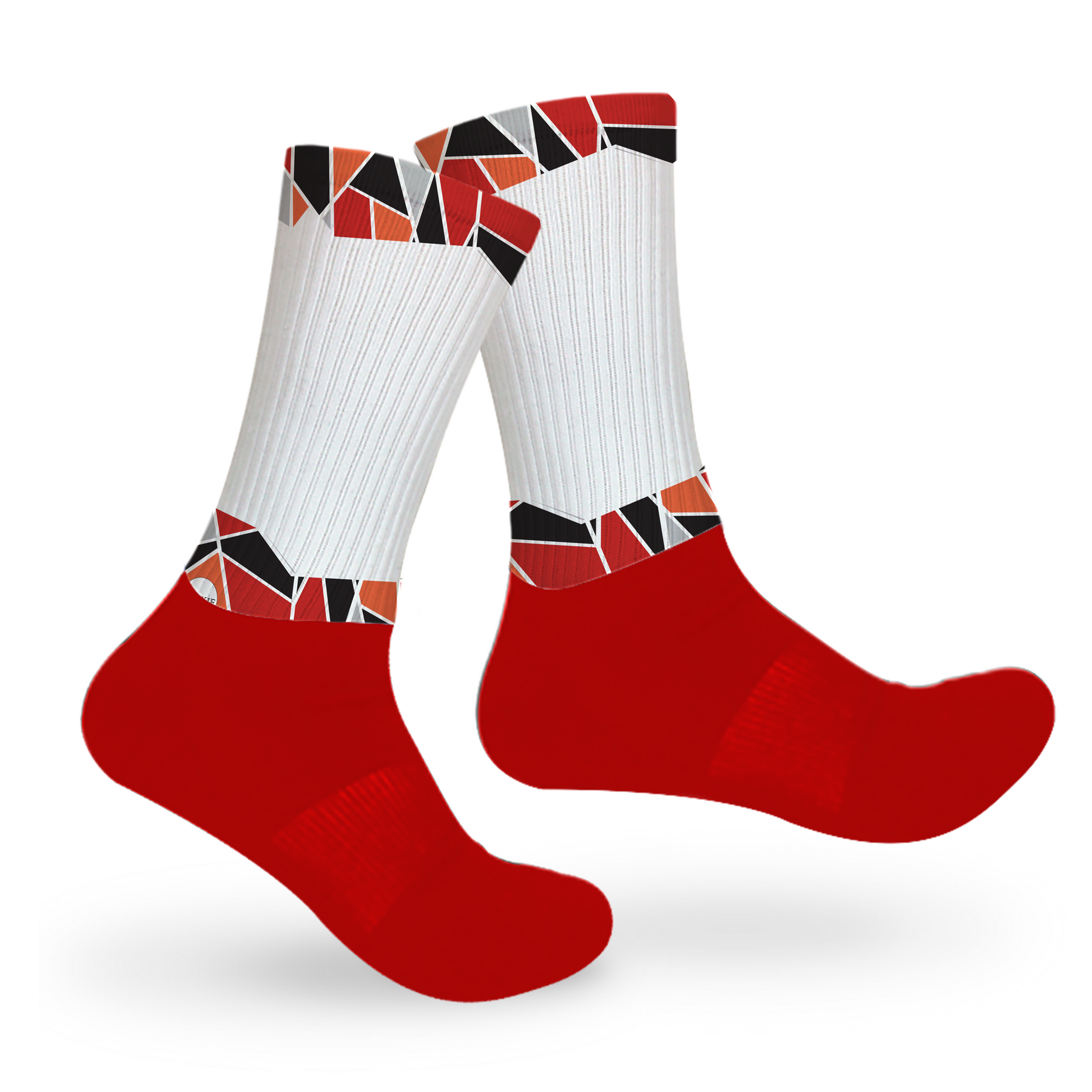 Who doesn't love a good print? We know we do and this cool, stained glass print is just what you need to make your socks the star of the show.This style is mid-crew length, with a cushioned dry-fit cotton foot and a high quality print material from the ankle up.