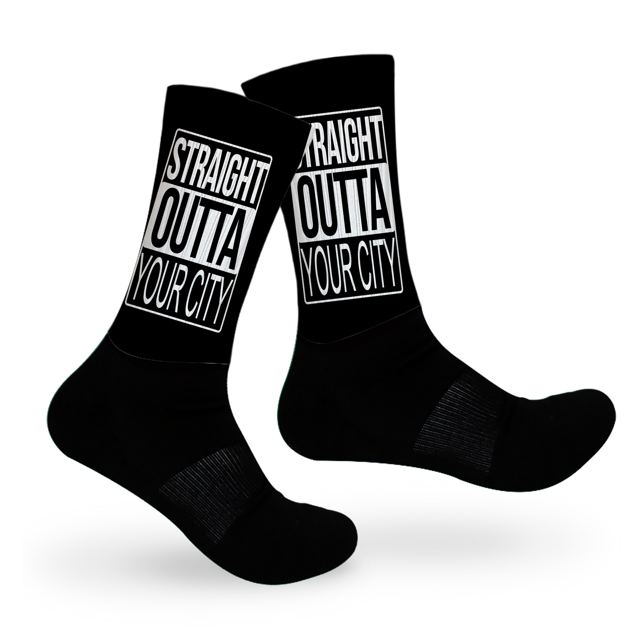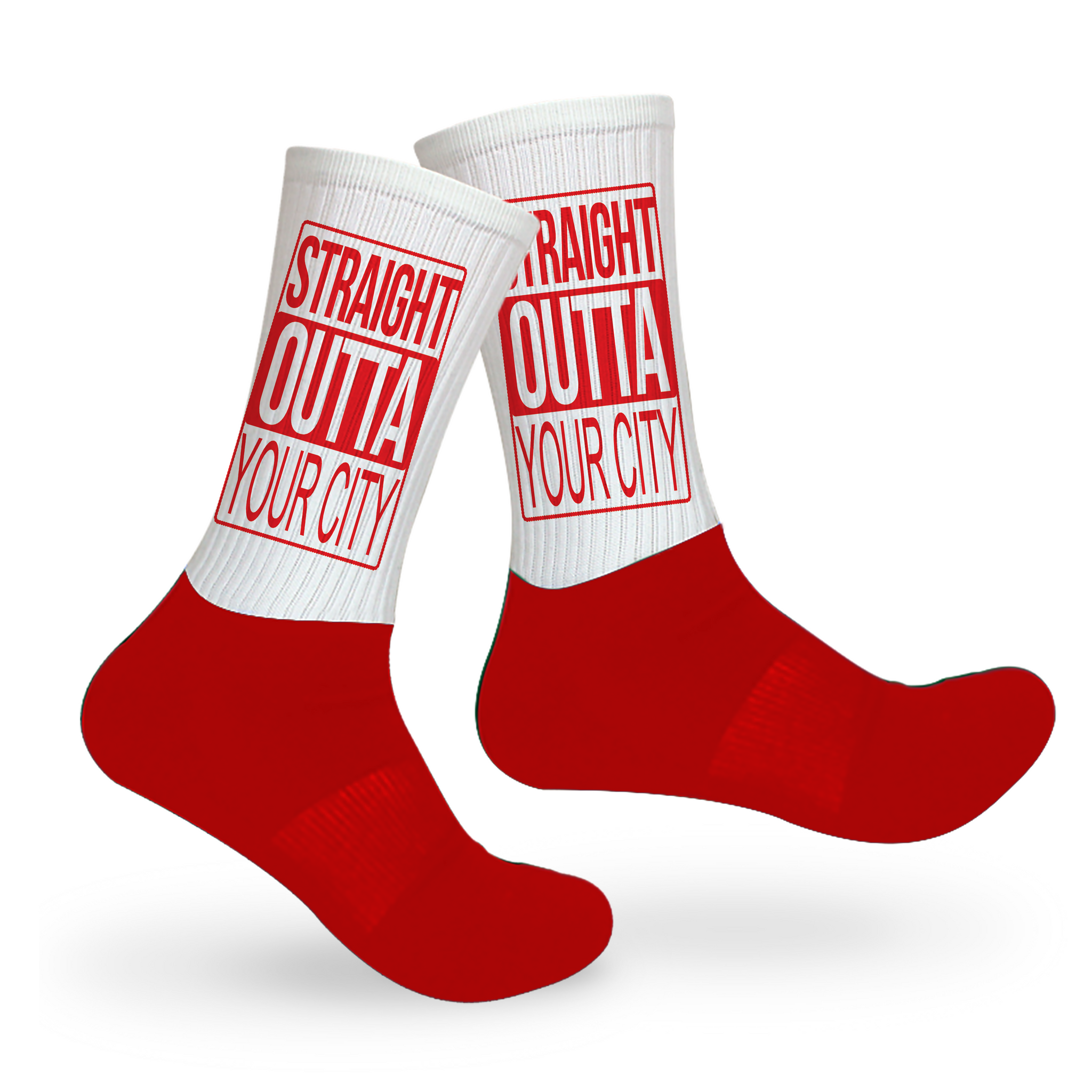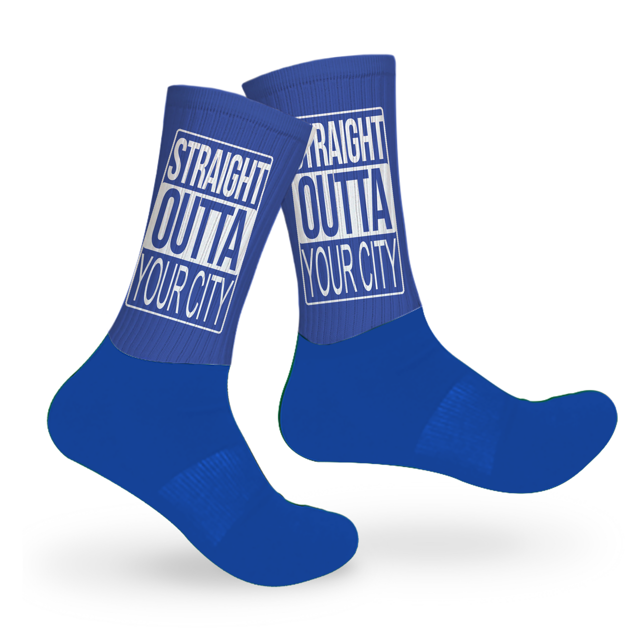 When Rep Your City means from head to toe! Show your city some love with a hometown shout out on your socks. This style is mid-crew length, with a cushioned dry-fit cotton foot and a high quality print material from the ankle up.