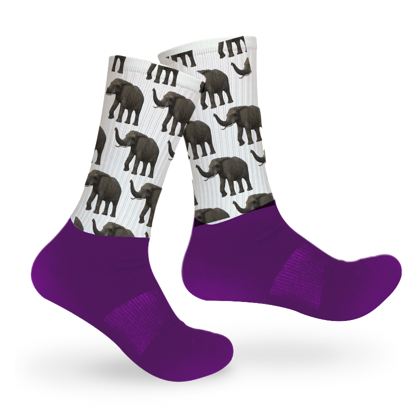 Who doesn't love a good print? We know we do and this fun, elephant print is just what you need for a real style statement. This style is mid-crew length, with a cushioned dry-fit cotton foot and a high quality print material from the ankle up.
