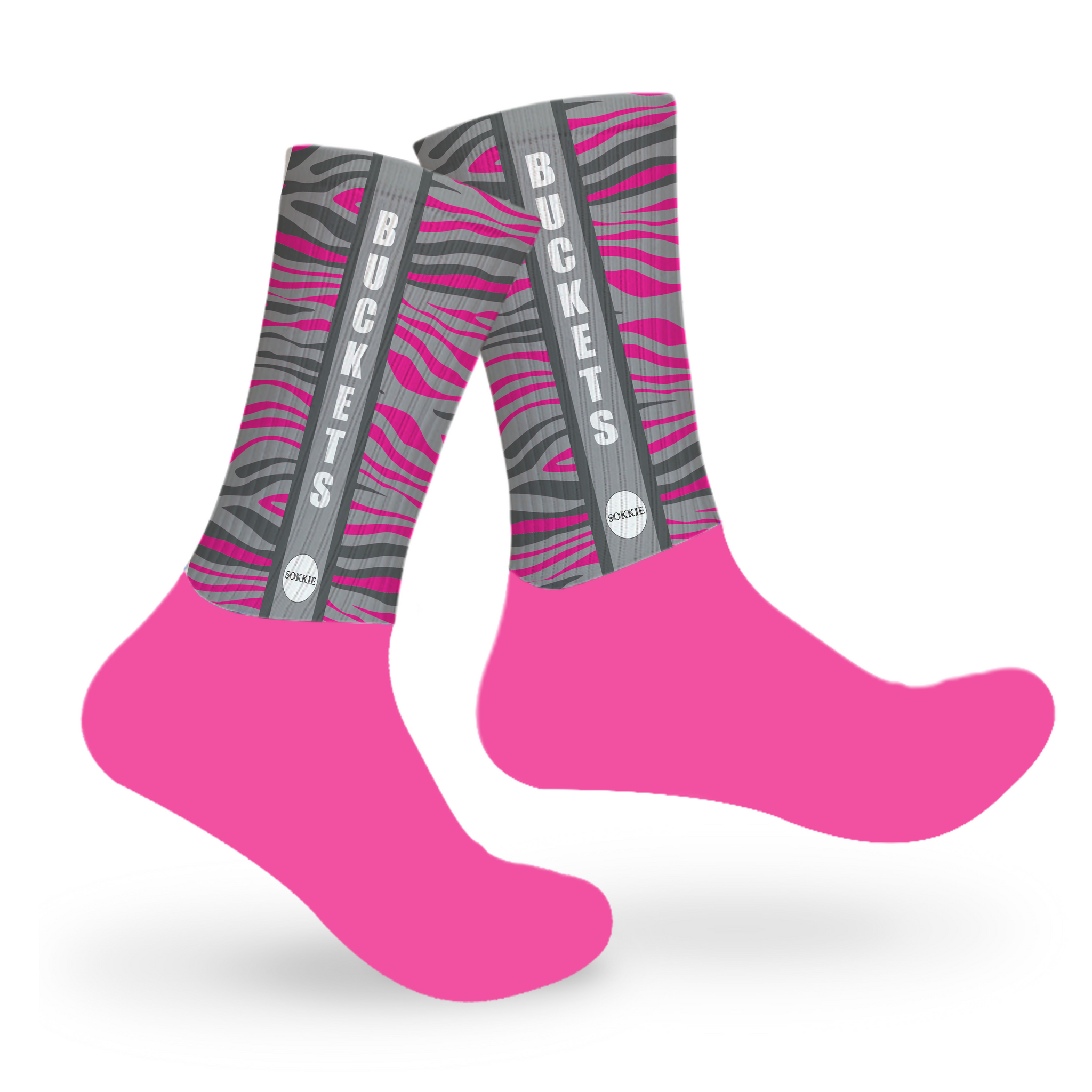 Who doesn't love a good print? We know we do and this bright, zebra print is just what you need for a real style statement. This style is mid-crew length, with a cushioned dry-fit cotton foot and a high quality print material from the ankle up.